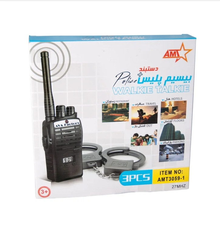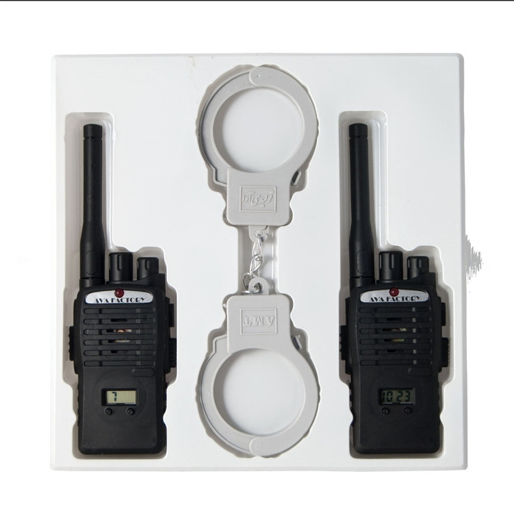 به همراه ست بیسیم یک جفت دستبند نیز در جعبه قرار دارد تا کودک هنگام بازی با آن حس یک پلیس واقعی را داشته باشد.