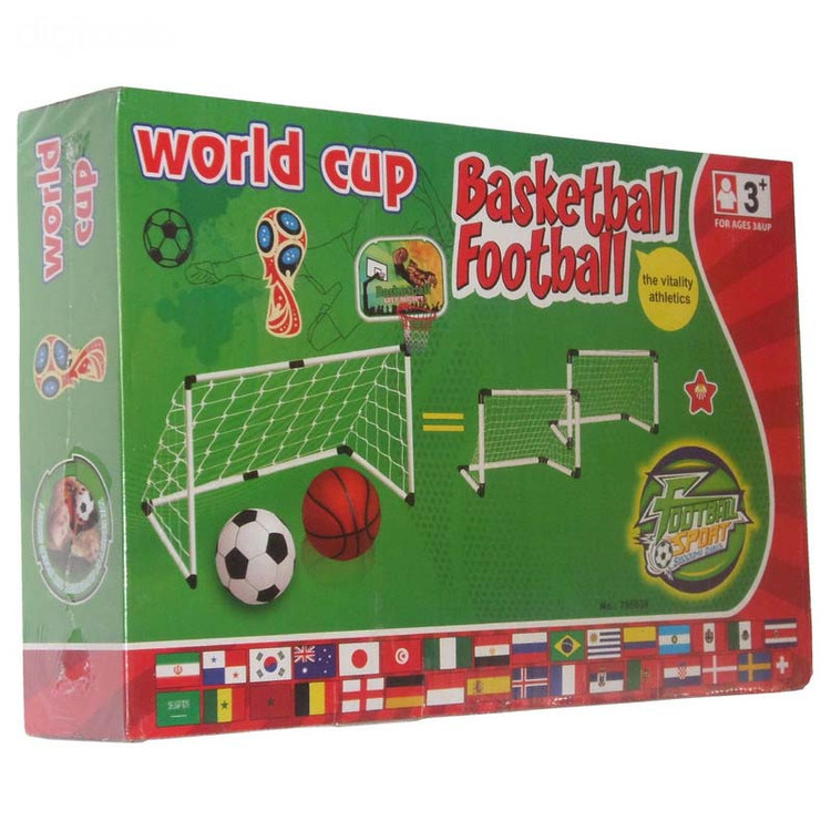 محتویات بسته: - دروازه فوتبال پلاستیکی - حلقه بسکتبال قابل نصب - توپ فوتبال کوچک - توپ بسکتبال کوچک - پایه و اتصالات