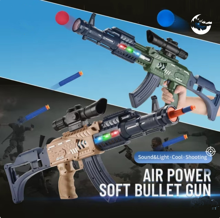 این تفنگ دوکاره با قابلیت پرتاب توپهای نرم و تیرهای چسبونکی، تجربهای متنوع و سرگرمکننده رو برای کودک فراهم میکنه.